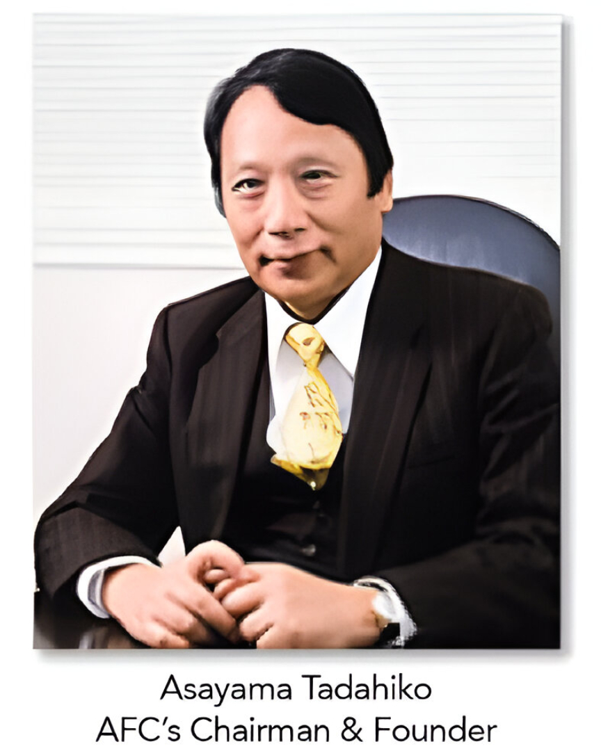 AFC merupakan singkatan dari Asayama Family Club. AFC Japan didirikan oleh Asayama Tadahiko setelah mengumpulkan pengalaman penjualan dan perdagangan selama bertahun-tahun. Beliau bekerja keras untuk membangun sistem produksi yang komprehensif dan beroperasi dengan 4 Prinsip Utama, yaitu meningkatkan Standar Kualitas, Keterjangkauan, Peningkatan Kesadaran dan Tanggung Jawab Sosial.